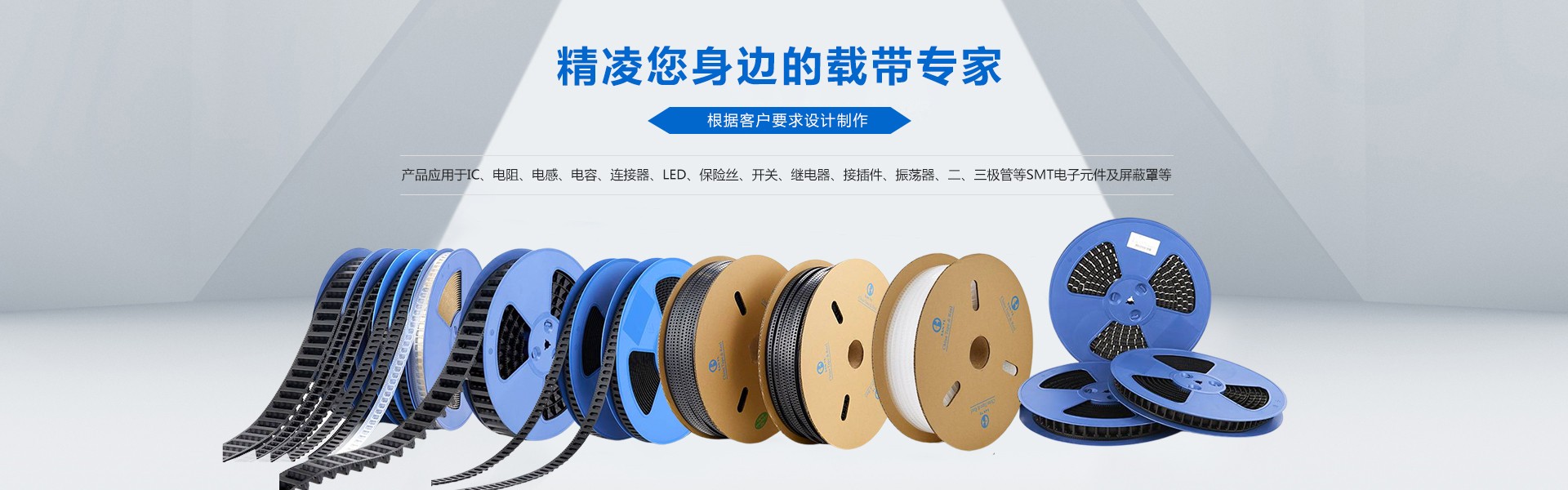 东莞市精凌电子有限公司是专业生产精密SMD包装载带(Carrier Tape)的一般纳税人企业。产品广泛应用于IC、电阻、电感、电容、连接器、LED、保险丝、开关、继电器、接插件、振荡器、二、三极管等SMT电子元件及屏蔽罩等精密五金冲压件的包装。